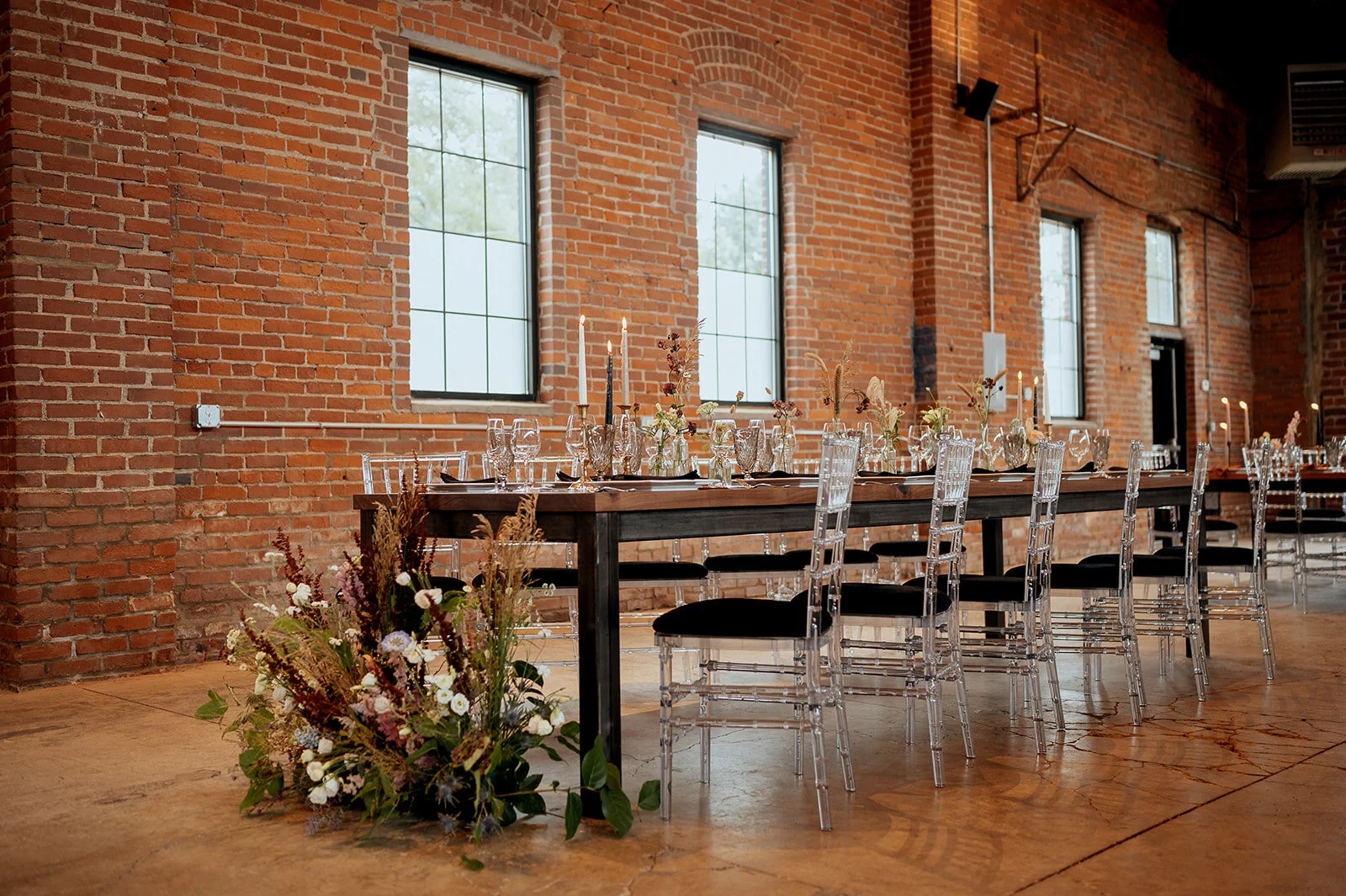 Carmon’s is a 10,000 sq ft restored modern urban venue with exposed brick and beautiful windows. The owner wanted the space to be conducive to events so he added sound absorbent material under the gorgeous wood paneled ceiling. He also wants clients to be able to host their ceremony on-site for a seamless transition into cocktail hour and the reception. He built XL planter boxes for unique space dividers. He also built custom wood tables for your guests to sit at.